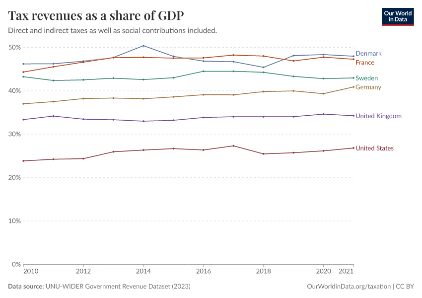 UNU-WIDER Government Revenue Dataset (2023) – with major processing by Our World in Data. “Tax revenues as a share of GDP – UNU-WIDER” [dataset]. UNU-WIDER, “Government Revenue Dataset (GRD) 2023” [original data]. Retrieved January 7, 2026 from https://archive.ourworldindata.org/20260105-133053/grapher/tax-revenues-as-a-share-of-gdp-unu-wider.html (archived on January 5, 2026).