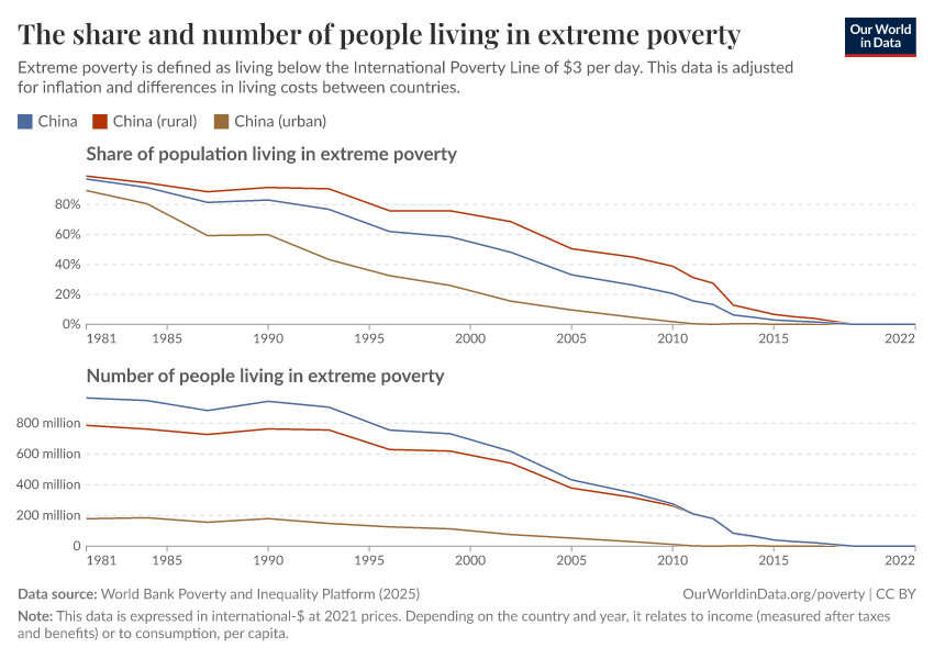 - Share of population living in extreme poverty vs. mean income or consumption per day