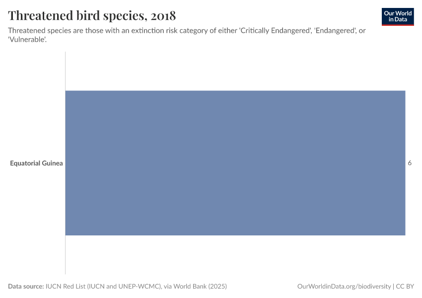 “Data Page: Threatened bird species”. Our World in Data (2025). Data adapted from IUCN Red List (IUCN and UNEP-WCMC), via World Bank. Retrieved from https://archive.ourworldindata.org/20251220-152415/grapher/threatened-bird-species.html [online resource] (archived on December 20, 2025).How to cite this data