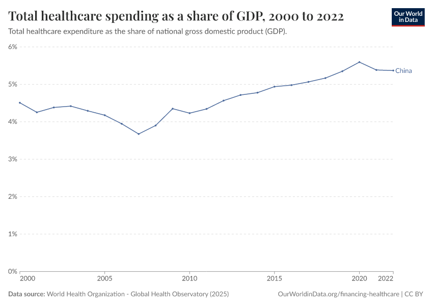 “Data Page: Total healthcare spending as a share of GDP”. Our World in Data (2026). Data adapted from World Health Organization. Retrieved from https://archive.ourworldindata.org/20260304-094028/grapher/total-healthcare-expenditure-gdp.html [online resource] (archived on March 4, 2026).How to cite this data