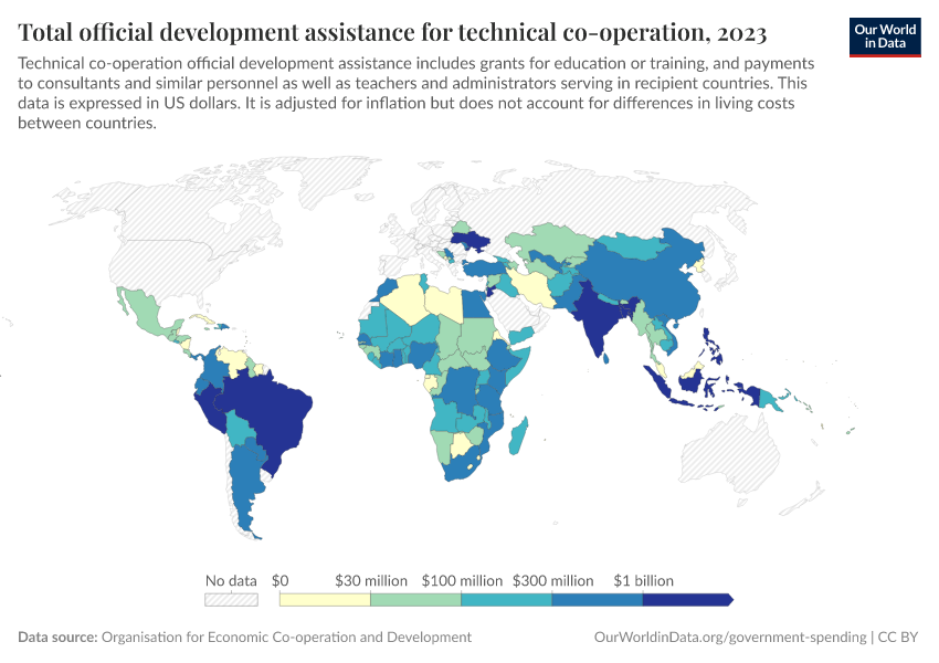 “Data Page: Total official development assistance for technical co-operation”. Our World in Data (2025). Data adapted from Organisation for Economic Co-operation and Development. Retrieved from https://archive.ourworldindata.org/20251125-165536/grapher/total-official-development-assistance-for-technical-cooperation.html [online resource] (archived on November 25, 2025).