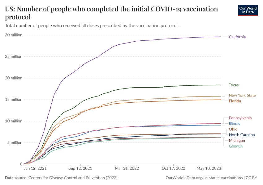 Centers for Disease Control and Prevention (2023) – processed by Our World in Data. “US: Number of people who completed the initial COVID-19 vaccination protocol” [dataset]. Centers for Disease Control and Prevention, “COVID-19, Vaccinations (United States)” [original data]. Retrieved January 16, 2026 from https://archive.ourworldindata.org/20250909-093708/grapher/us-covid-number-fully-vaccinated.html (archived on September 9, 2025).