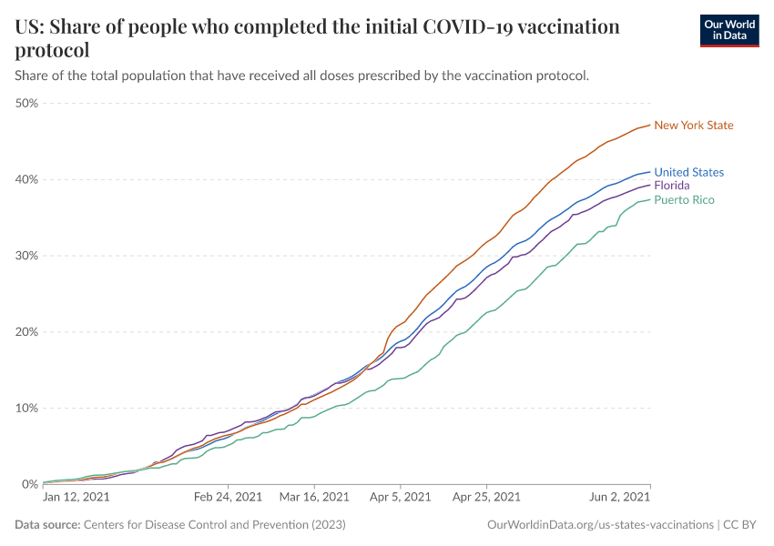 Centers for Disease Control and Prevention (2023) – processed by Our World in Data. “US: Share of people who completed the initial COVID-19 vaccination protocol” [dataset]. Centers for Disease Control and Prevention, “COVID-19, Vaccinations (United States)” [original data]. Retrieved December 19, 2025 from https://archive.ourworldindata.org/20250909-093708/grapher/us-covid-share-fully-vaccinated.html (archived on September 9, 2025).