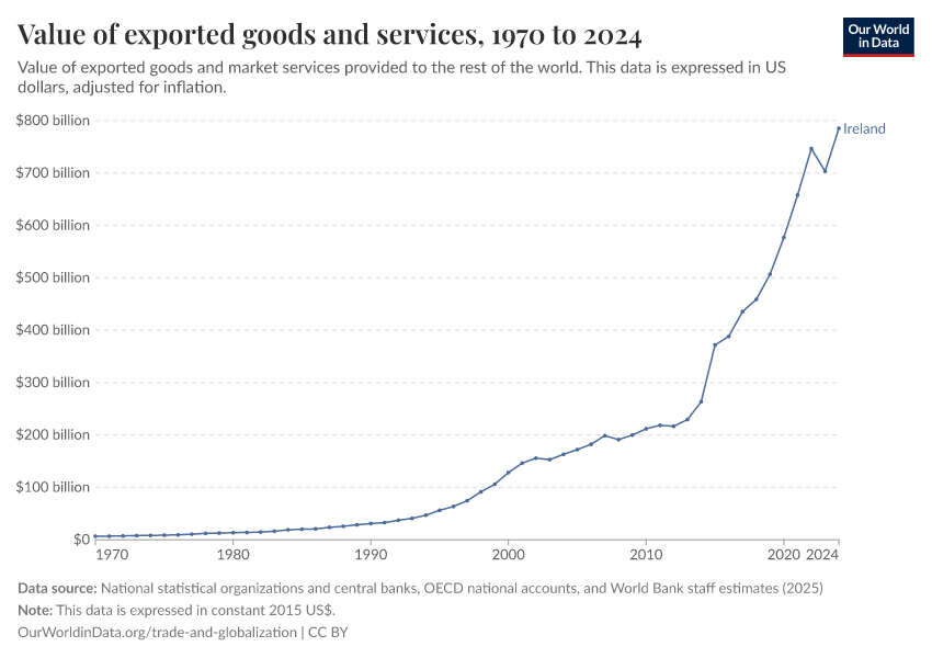 “Data Page: Value of exported goods and services”. Our World in Data (2026). Data adapted from National statistical organizations and central banks, OECD national accounts, and World Bank staff estimates. Retrieved from https://archive.ourworldindata.org/20260112-111535/grapher/value-of-exported-goods-and-services.html [online resource] (archived on January 12, 2026).How to cite this data