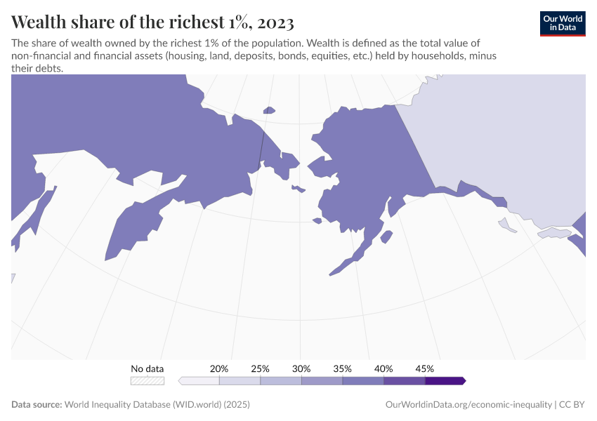 “Data Page: Wealth share of the richest 1%”, part of the following publication: Joe Hasell, Bertha Rohenkohl, Pablo Arriagada, Esteban Ortiz-Ospina, and Max Roser (2023) - “Economic Inequality”. Data adapted from World Inequality Database (WID.world). Retrieved from https://archive.ourworldindata.org/20250909-093708/grapher/wealth-share-richest-1-percent.html [online resource] (archived on September 9, 2025).How to cite this data