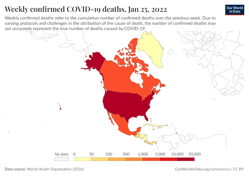 “Data Page: Weekly confirmed COVID-19 deaths”, part of the following publication: Edouard Mathieu, Hannah Ritchie, Lucas Rodés-Guirao, Cameron Appel, Daniel Gavrilov, Charlie Giattino, Joe Hasell, Bobbie Macdonald, Saloni Dattani, Diana Beltekian, Esteban Ortiz-Ospina, and Max Roser (2020) - “COVID-19 Pandemic”. Data adapted from World Health Organization. Retrieved from https://archive.ourworldindata.org/20260116-063306/grapher/weekly-covid-deaths.html [online resource] (archived on January 16, 2026).How to cite this data
