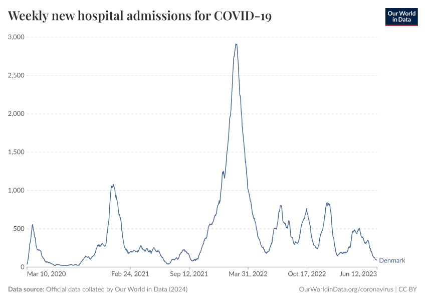 “Data Page: Weekly new hospital admissions for COVID-19”, part of the following publication: Edouard Mathieu, Hannah Ritchie, Lucas Rodés-Guirao, Cameron Appel, Daniel Gavrilov, Charlie Giattino, Joe Hasell, Bobbie Macdonald, Saloni Dattani, Diana Beltekian, Esteban Ortiz-Ospina, and Max Roser (2020) - “COVID-19 Pandemic”. Data adapted from Official data collated by Our World in Data. Retrieved from https://archive.ourworldindata.org/20250909-093708/grapher/weekly-hospital-admissions-covid.html [online resource] (archived on September 9, 2025).