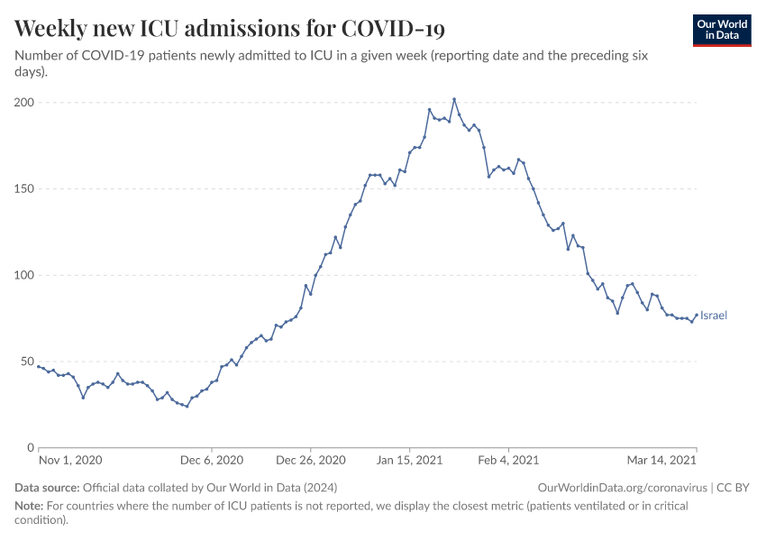 “Data Page: Weekly new ICU admissions for COVID-19”, part of the following publication: Edouard Mathieu, Hannah Ritchie, Lucas Rodés-Guirao, Cameron Appel, Daniel Gavrilov, Charlie Giattino, Joe Hasell, Bobbie Macdonald, Saloni Dattani, Diana Beltekian, Esteban Ortiz-Ospina, and Max Roser (2020) - “COVID-19 Pandemic”. Data adapted from Official data collated by Our World in Data. Retrieved from https://archive.ourworldindata.org/20250909-093708/grapher/weekly-icu-admissions-covid.html [online resource] (archived on September 9, 2025).