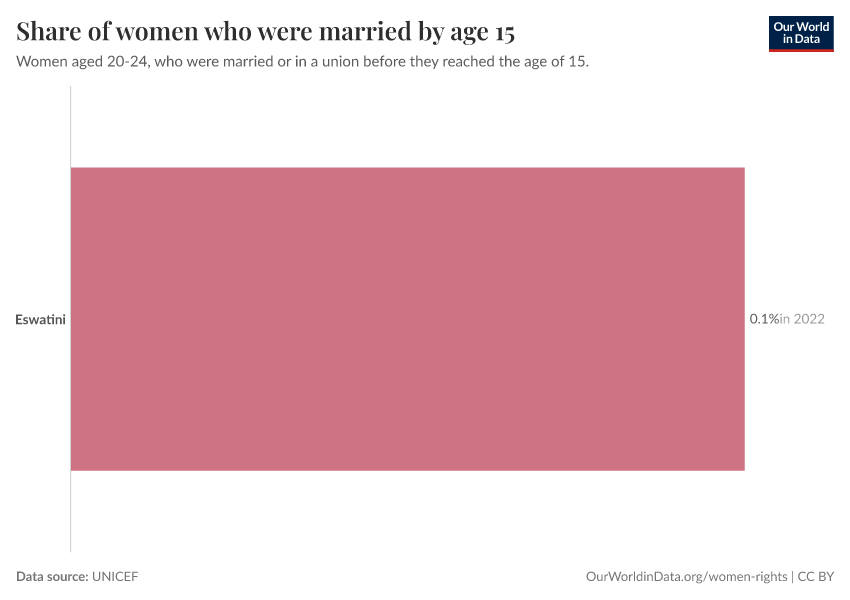 “Data Page: Share of women who were married by age 15”. Our World in Data (2026). Data adapted from UNICEF. Retrieved from https://archive.ourworldindata.org/20251125-165536/grapher/women-married-by-age-15.html [online resource] (archived on November 25, 2025).