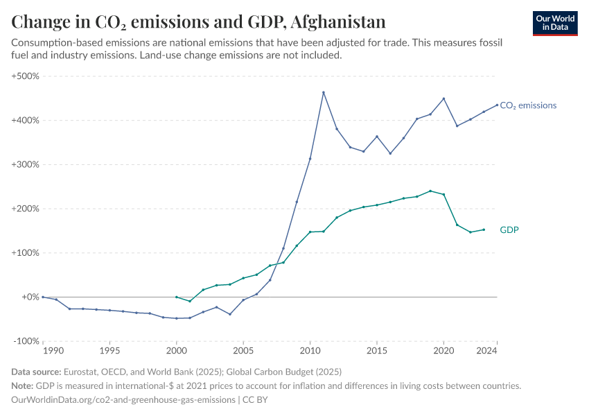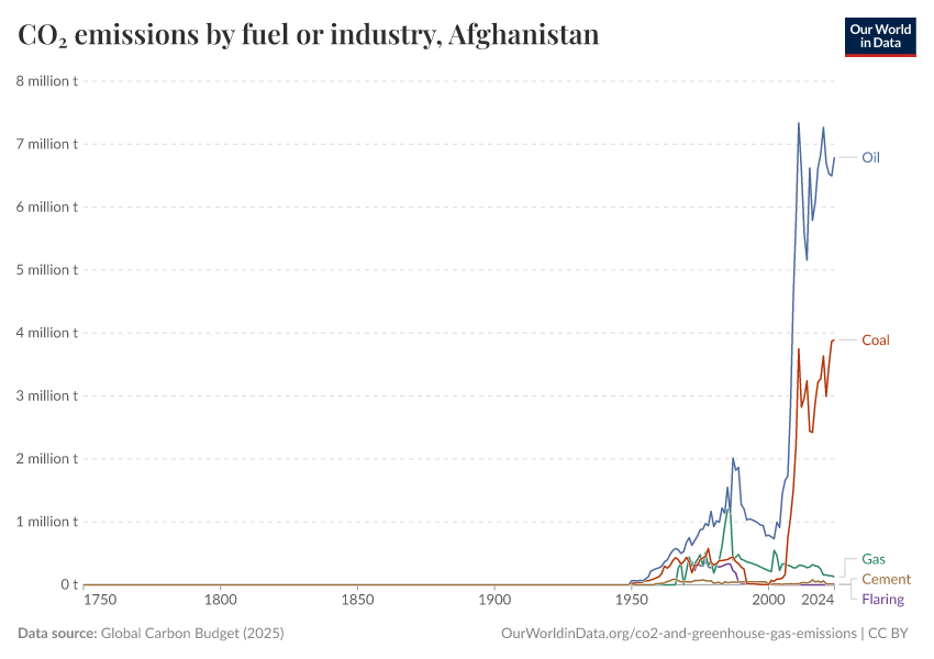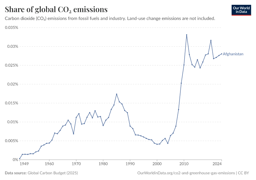 Hannah Ritchie (2025) - “CO₂ and Greenhouse Gas Emissions” Published online at OurWorldinData.org. Retrieved from: 'https://ourworldindata.org/profile/co2/afghanistan' [Online Resource]BibTeX citation