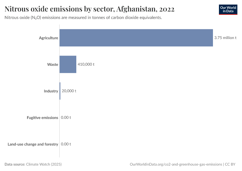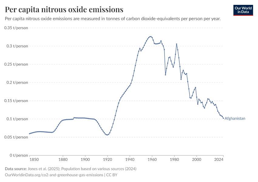Nitrous oxide: how much does the average person in Afghanistan emit? Where do emissions come from?