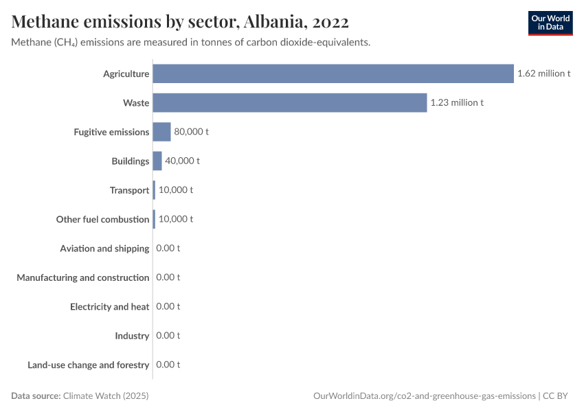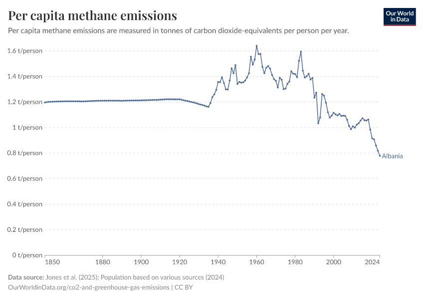Methane: how much does the average person in Albania emit? Where do emissions come from?
