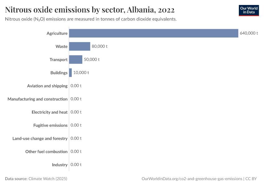Nitrous oxide: how much does the average person in Albania emit? Where do emissions come from?