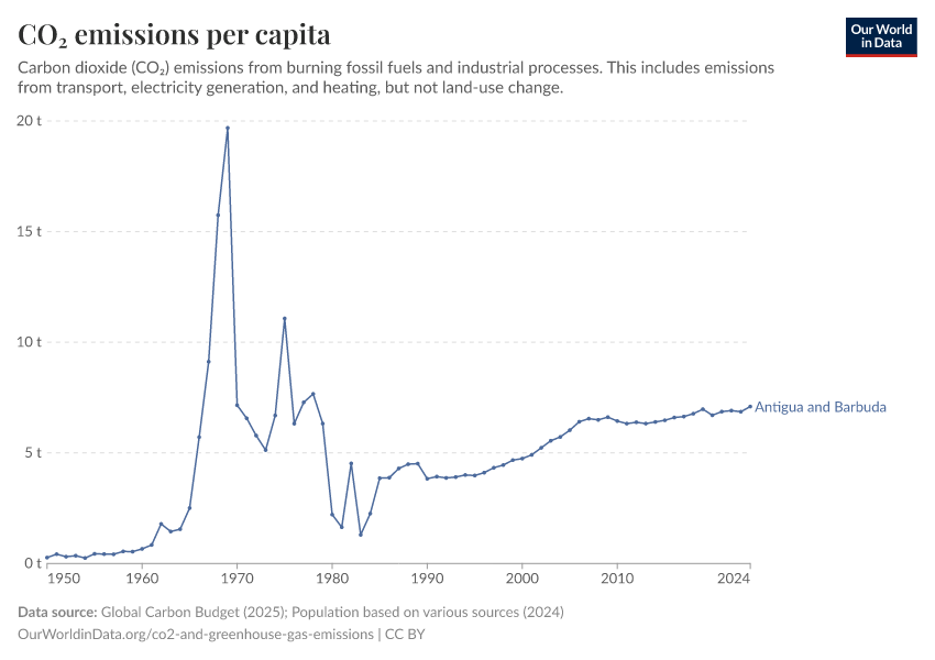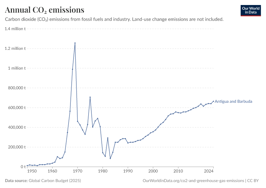 Hannah Ritchie (2025) - “CO₂ and Greenhouse Gas Emissions” Published online at OurWorldinData.org. Retrieved from: 'https://ourworldindata.org/profile/co2/antigua-and-barbuda' [Online Resource]BibTeX citation