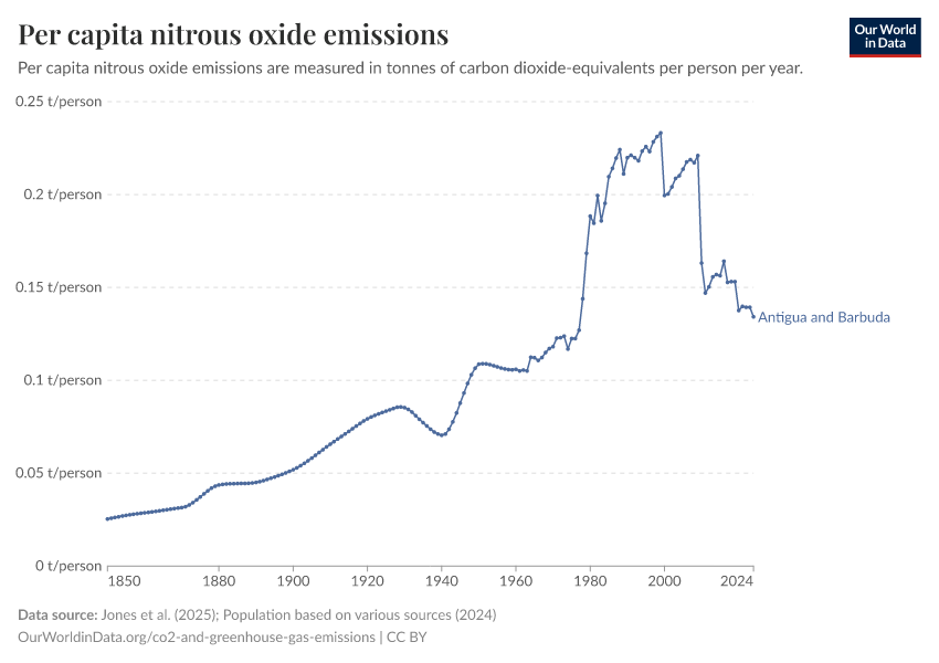 Nitrous oxide: how much does the average person in Antigua and Barbuda emit? Where do emissions come from?