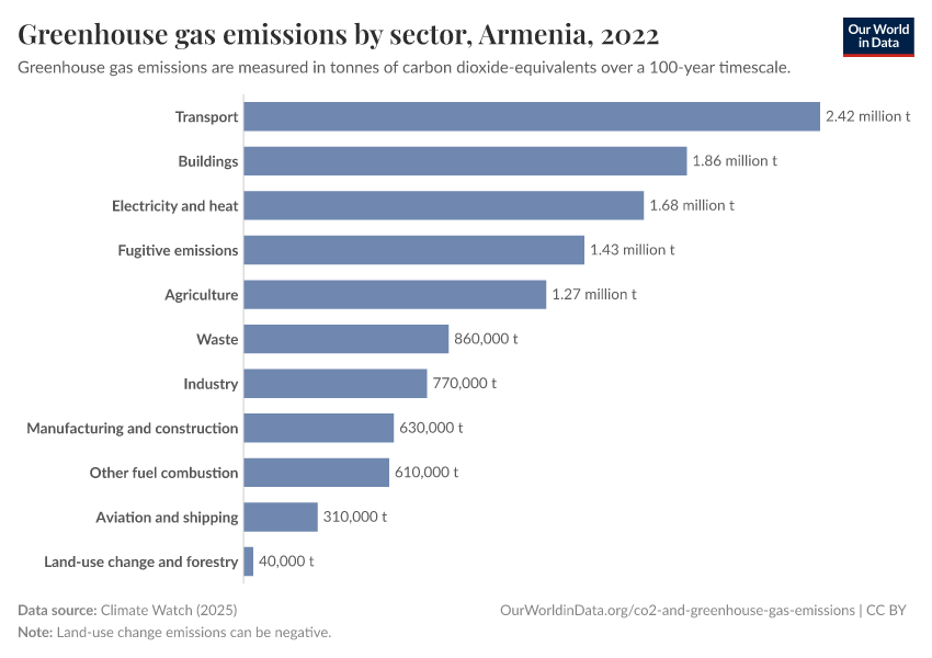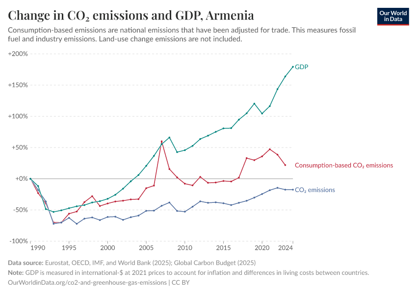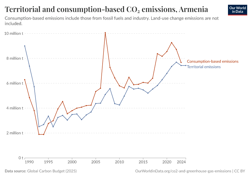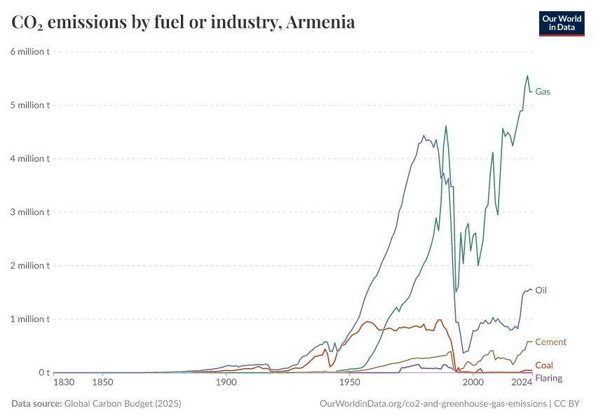 Hannah Ritchie (2025) - “CO₂ and Greenhouse Gas Emissions” Published online at OurWorldinData.org. Retrieved from: 'https://ourworldindata.org/profile/co2/armenia' [Online Resource]BibTeX citation