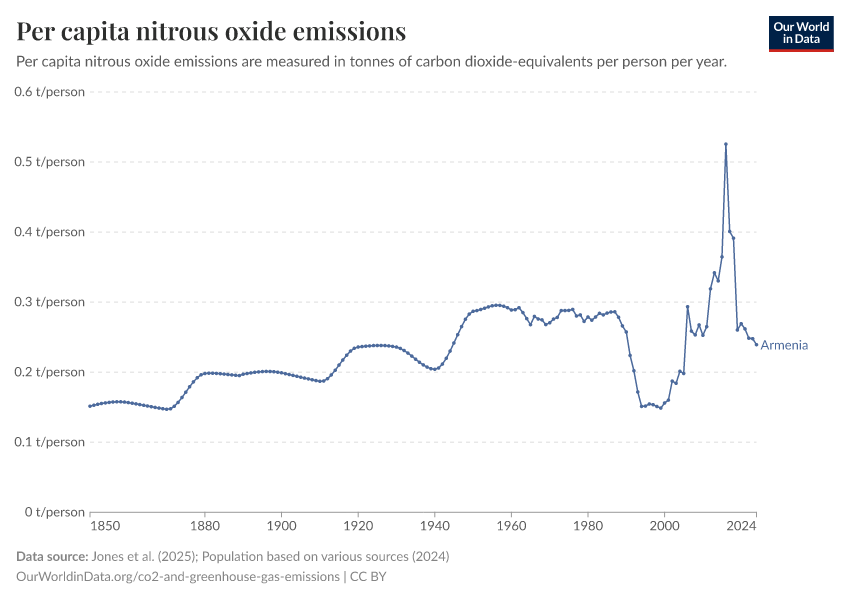 Nitrous oxide: how much does the average person in Armenia emit? Where do emissions come from?