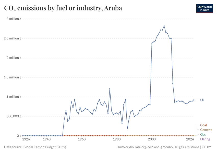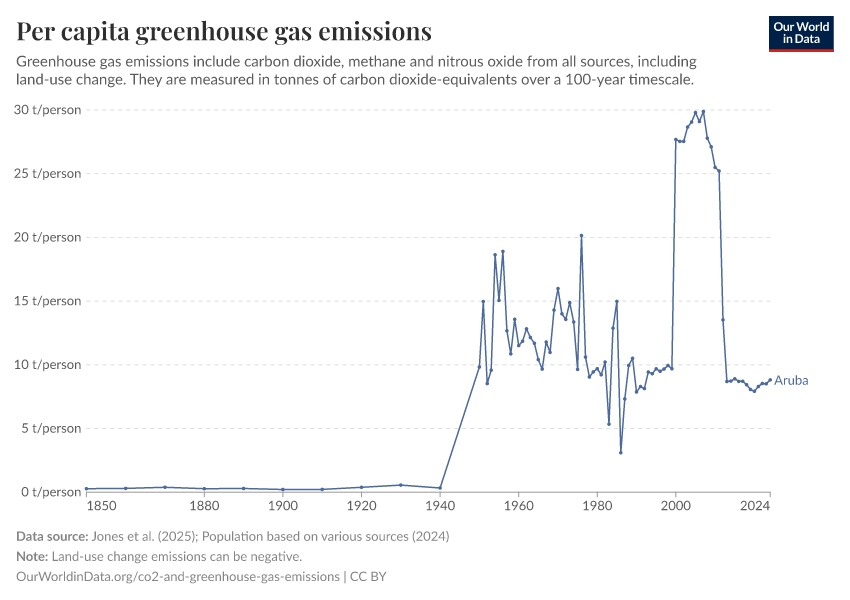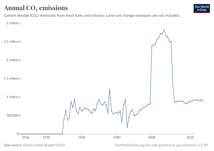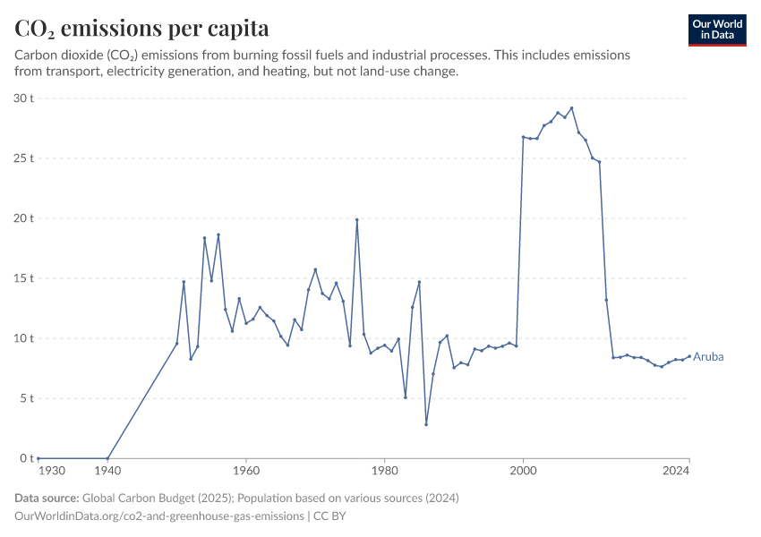 Hannah Ritchie (2025) - “CO₂ and Greenhouse Gas Emissions” Published online at OurWorldinData.org. Retrieved from: 'https://ourworldindata.org/profile/co2/aruba' [Online Resource]BibTeX citation