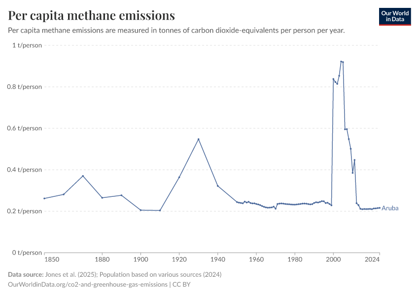 Methane: how much does the average person in Aruba emit? Where do emissions come from?