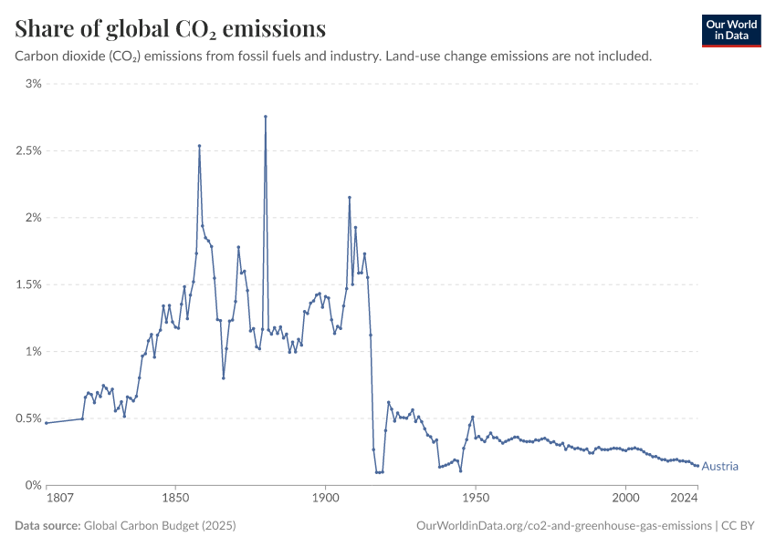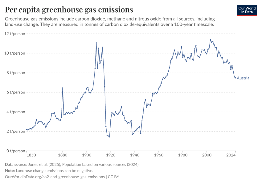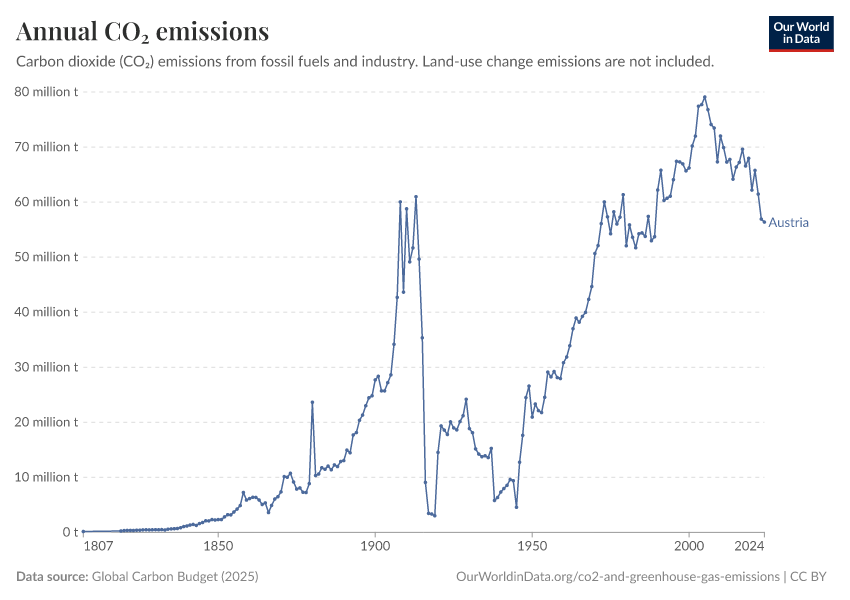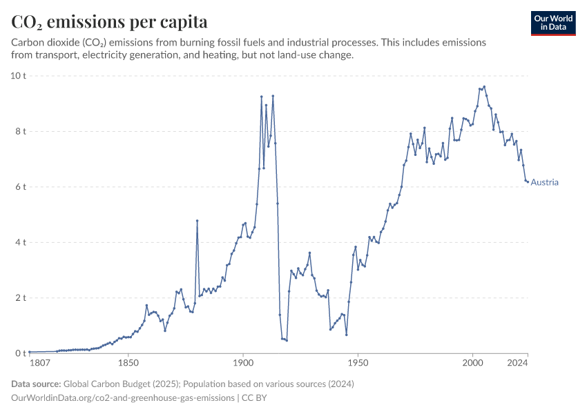 Hannah Ritchie (2025) - “CO₂ and Greenhouse Gas Emissions” Published online at OurWorldinData.org. Retrieved from: 'https://ourworldindata.org/profile/co2/austria' [Online Resource]BibTeX citation