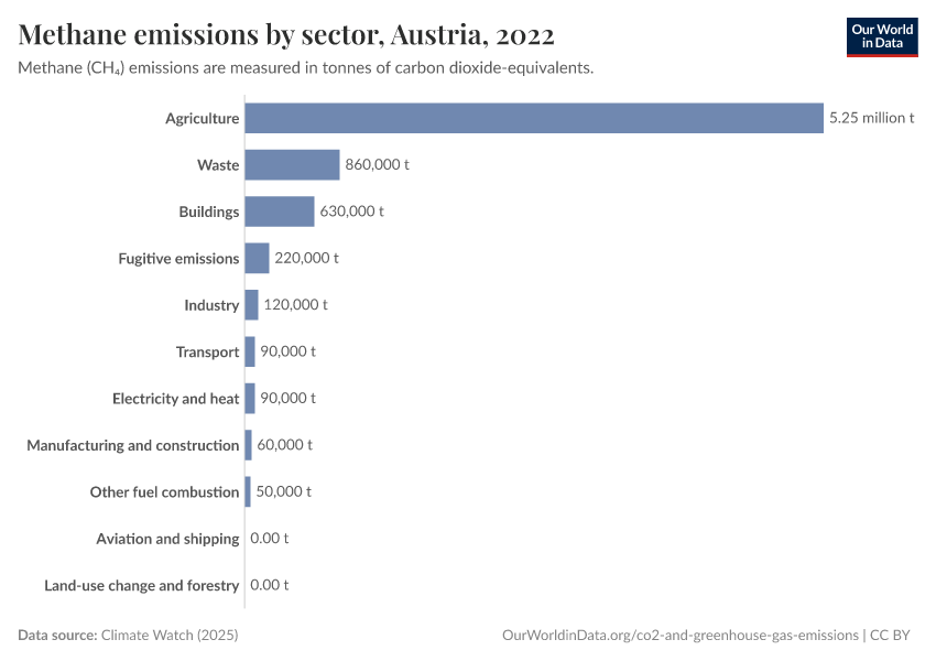 Methane: how much does the average person in Austria emit? Where do emissions come from?