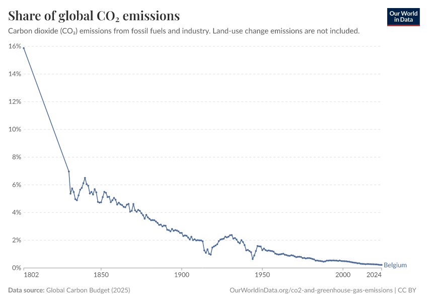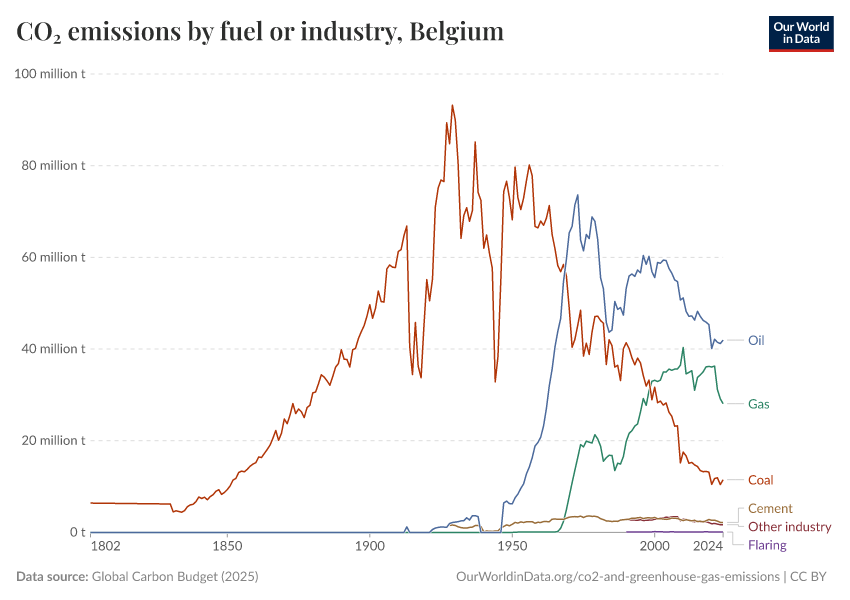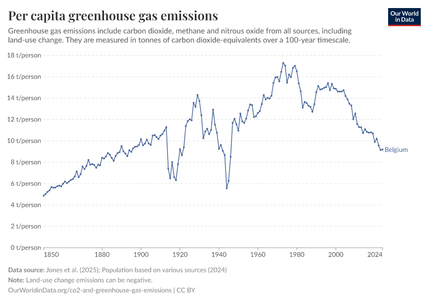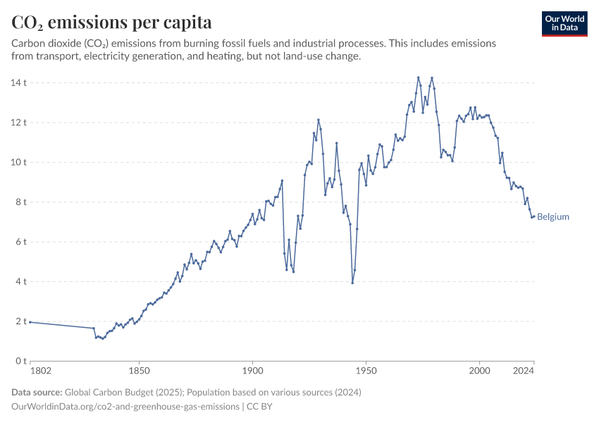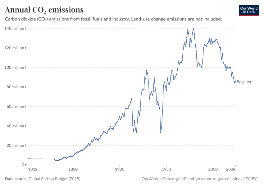 Hannah Ritchie (2025) - “CO₂ and Greenhouse Gas Emissions” Published online at OurWorldinData.org. Retrieved from: 'https://ourworldindata.org/profile/co2/belgium' [Online Resource]BibTeX citation
