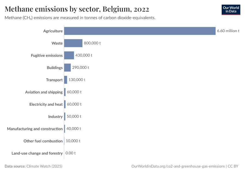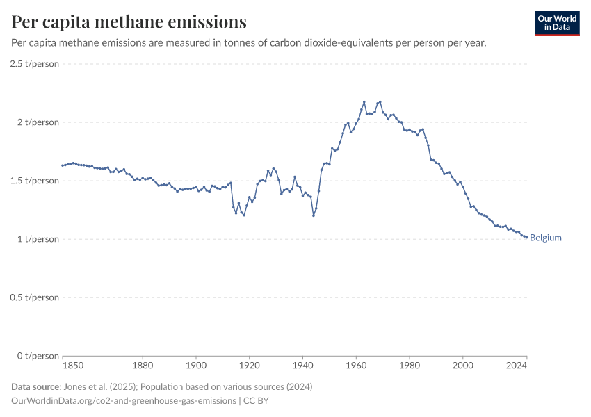 Methane: how much does the average person in Belgium emit? Where do emissions come from?