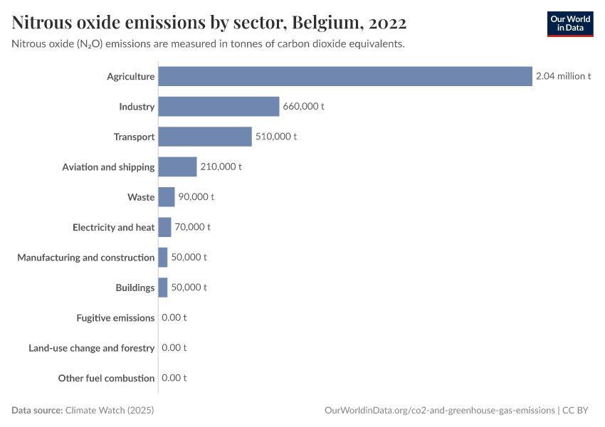 Nitrous oxide: how much does the average person in Belgium emit? Where do emissions come from?