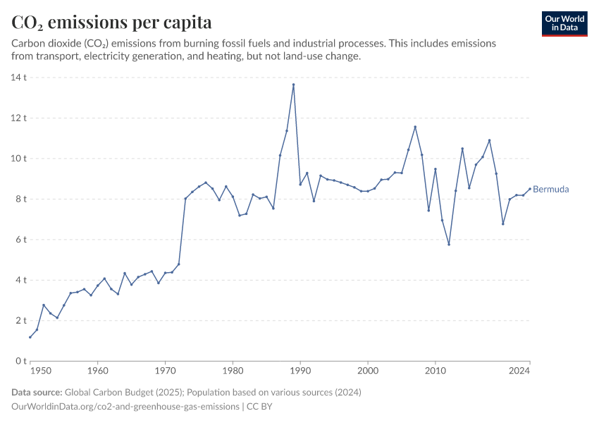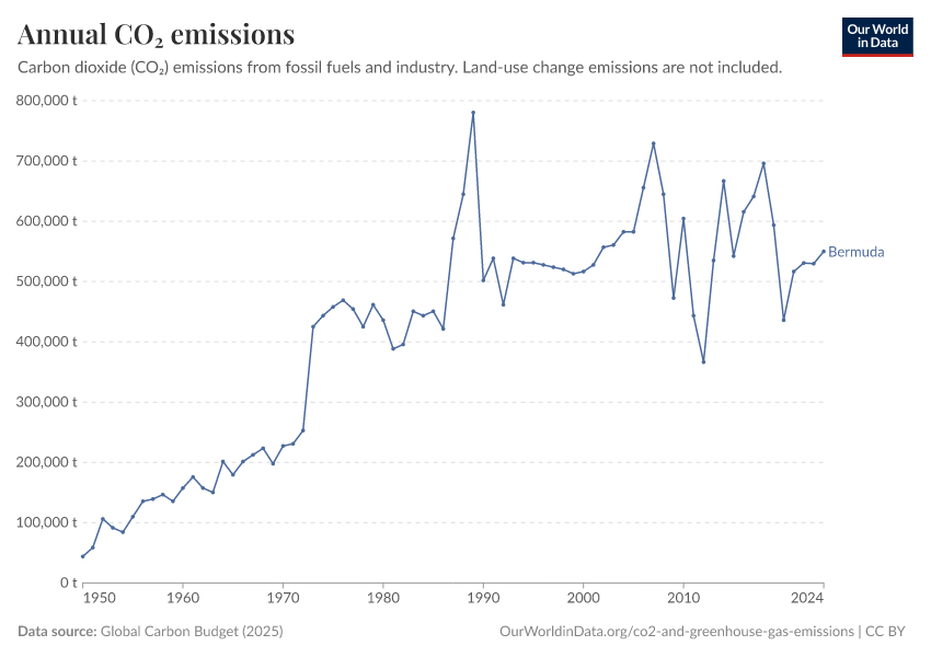 Hannah Ritchie (2025) - “CO₂ and Greenhouse Gas Emissions” Published online at OurWorldinData.org. Retrieved from: 'https://ourworldindata.org/profile/co2/bermuda' [Online Resource]BibTeX citation