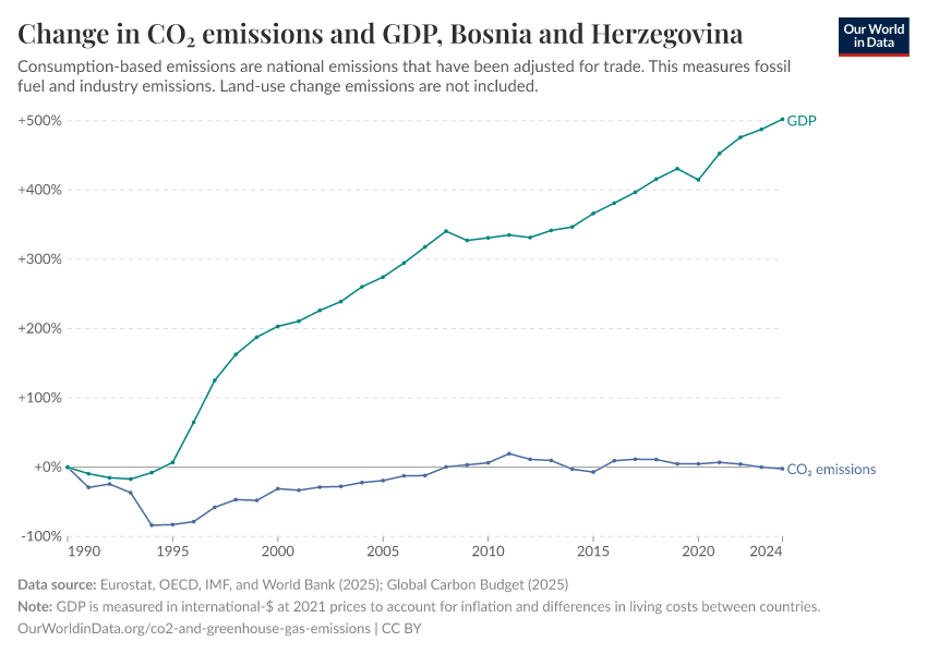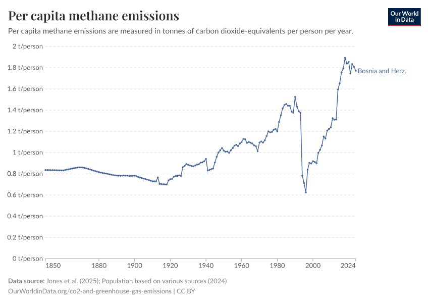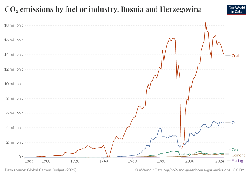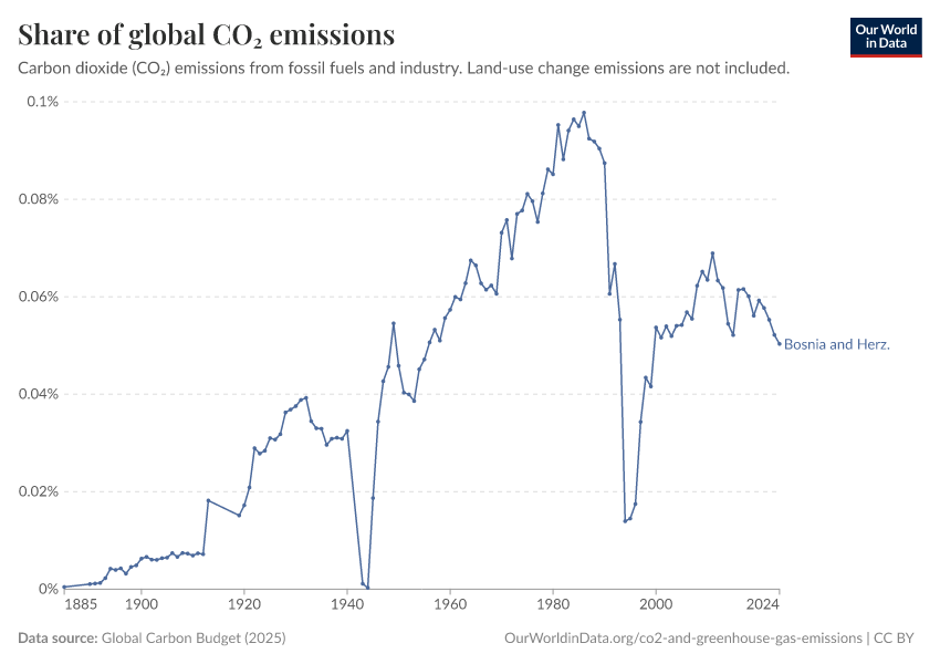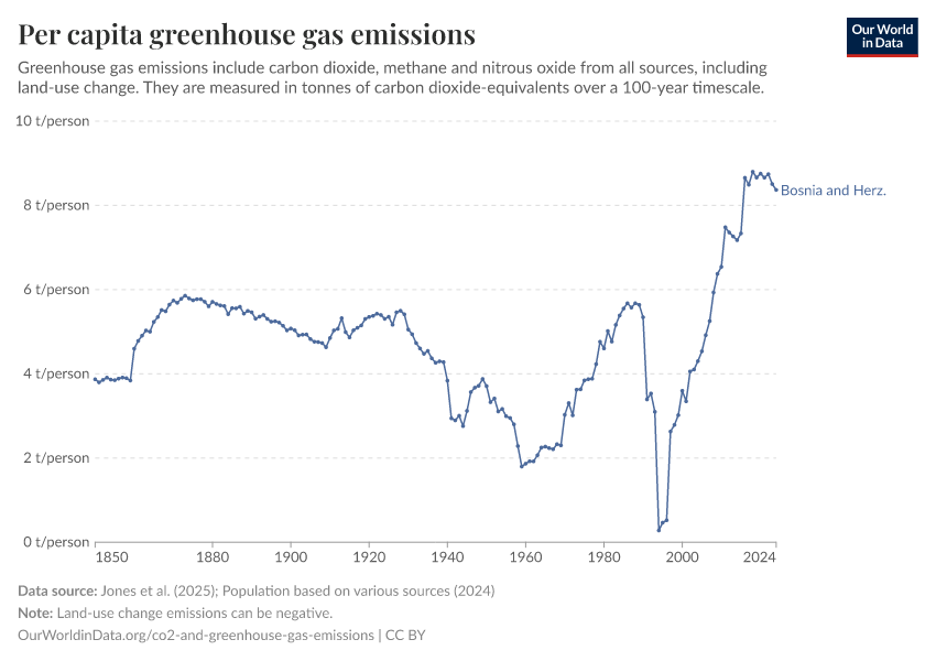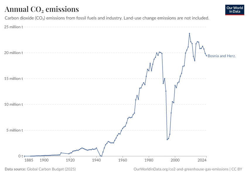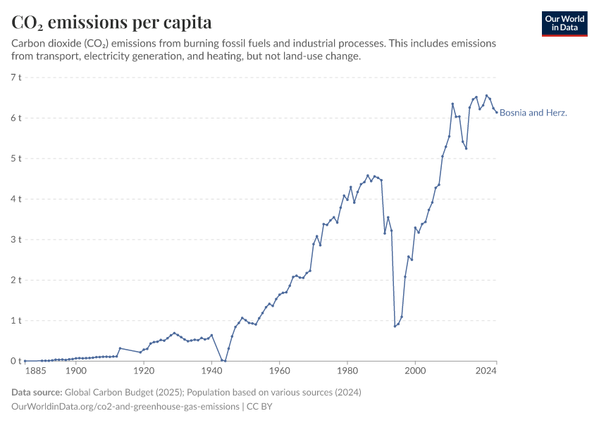 Hannah Ritchie (2025) - “CO₂ and Greenhouse Gas Emissions” Published online at OurWorldinData.org. Retrieved from: 'https://ourworldindata.org/profile/co2/bosnia-and-herzegovina' [Online Resource]BibTeX citation