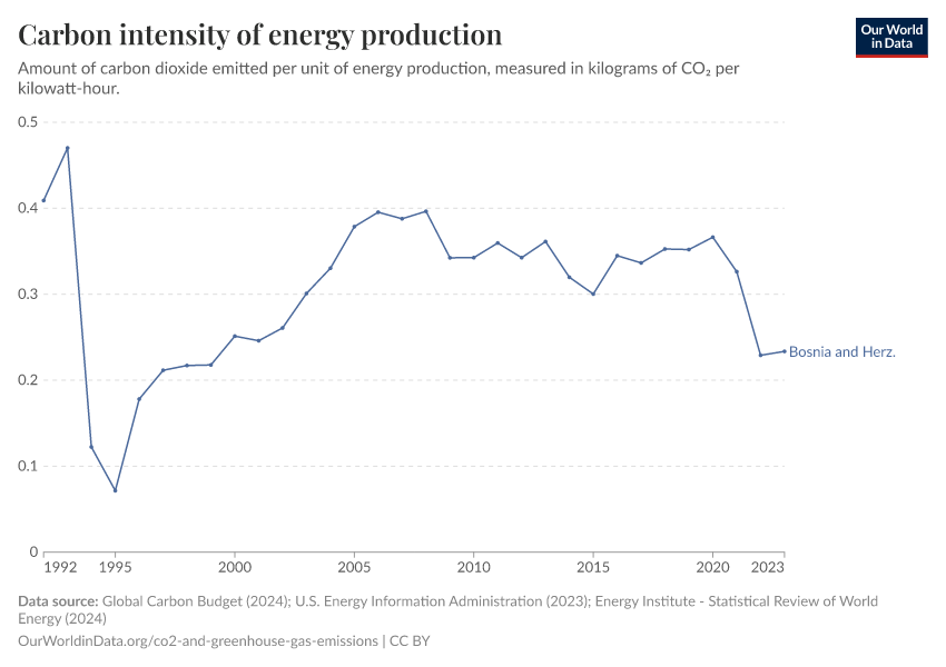 Carbon intensity: how much carbon does Bosnia and Herzegovina emit per unit of energy?
