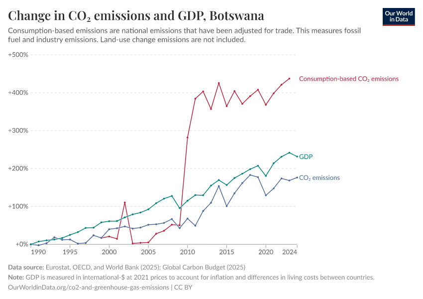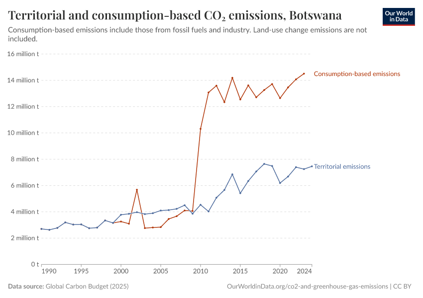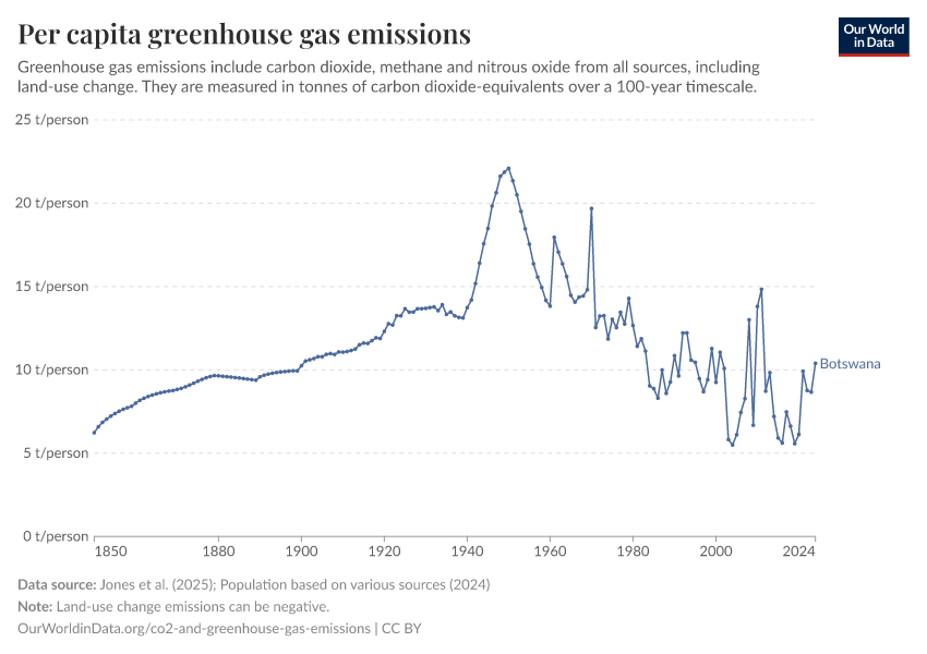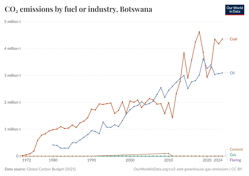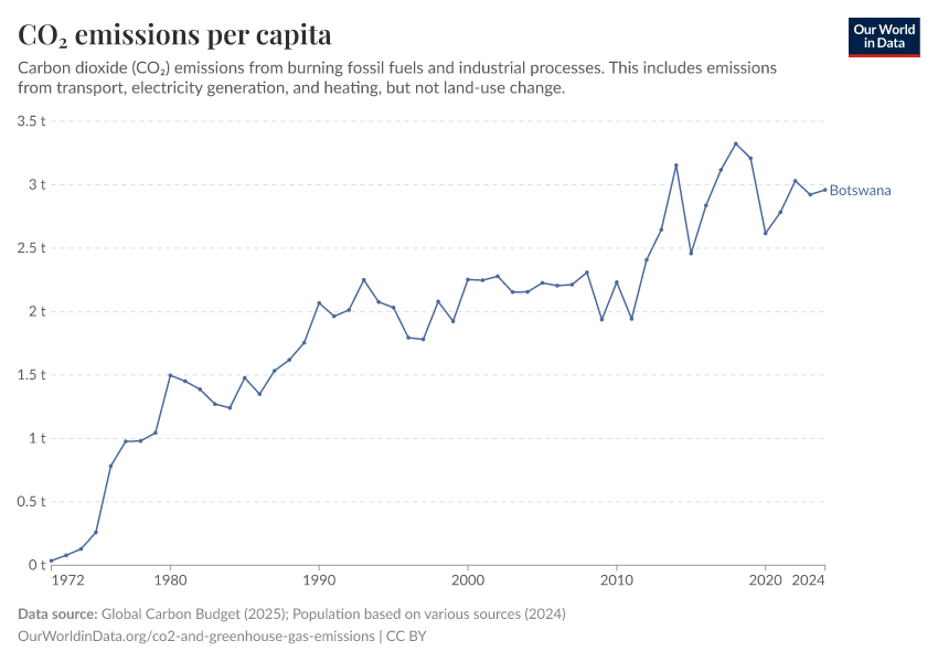 Hannah Ritchie (2025) - “CO₂ and Greenhouse Gas Emissions” Published online at OurWorldinData.org. Retrieved from: 'https://ourworldindata.org/profile/co2/botswana' [Online Resource]BibTeX citation