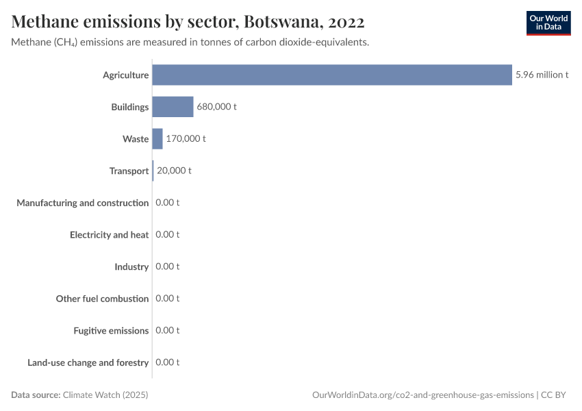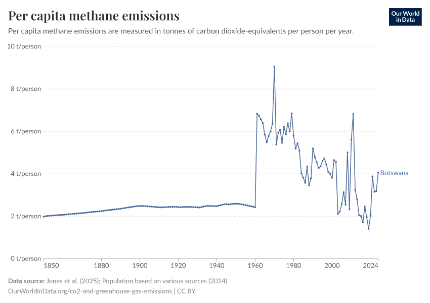Methane: how much does the average person in Botswana emit? Where do emissions come from?