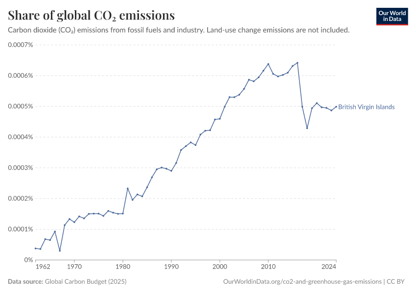 Hannah Ritchie (2025) - “CO₂ and Greenhouse Gas Emissions” Published online at OurWorldinData.org. Retrieved from: 'https://ourworldindata.org/profile/co2/british-virgin-islands' [Online Resource]BibTeX citation