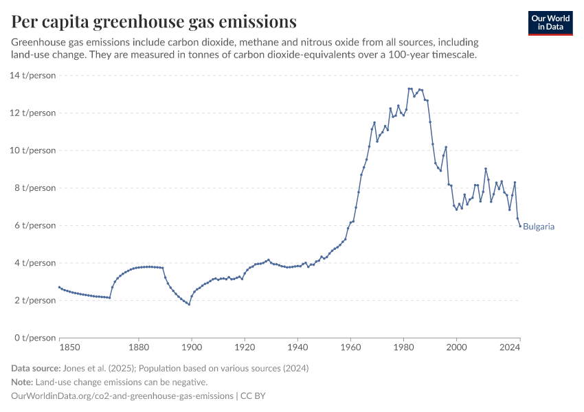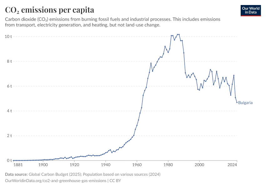 Hannah Ritchie (2025) - “CO₂ and Greenhouse Gas Emissions” Published online at OurWorldinData.org. Retrieved from: 'https://ourworldindata.org/profile/co2/bulgaria' [Online Resource]BibTeX citation
