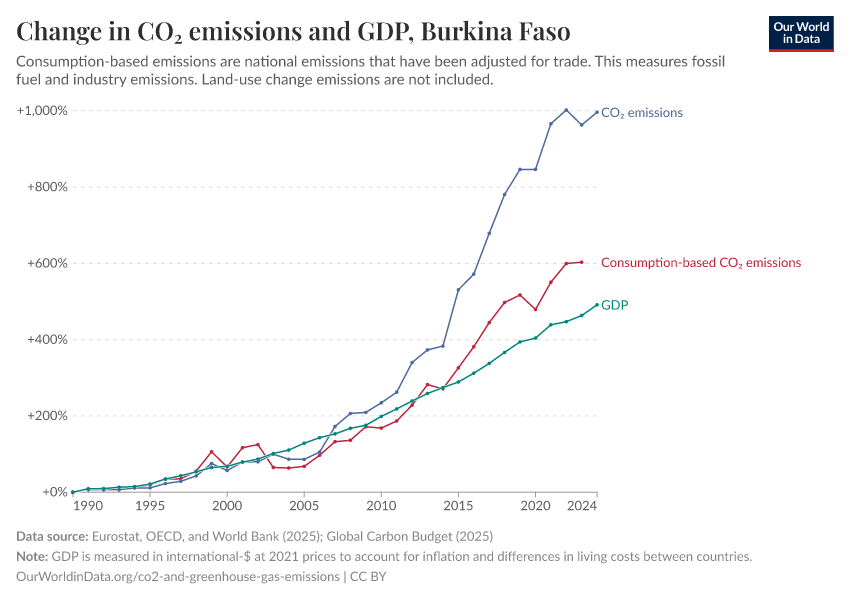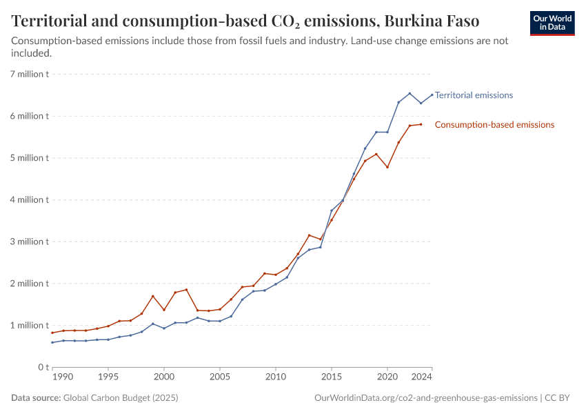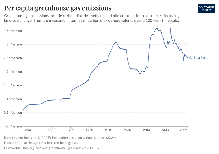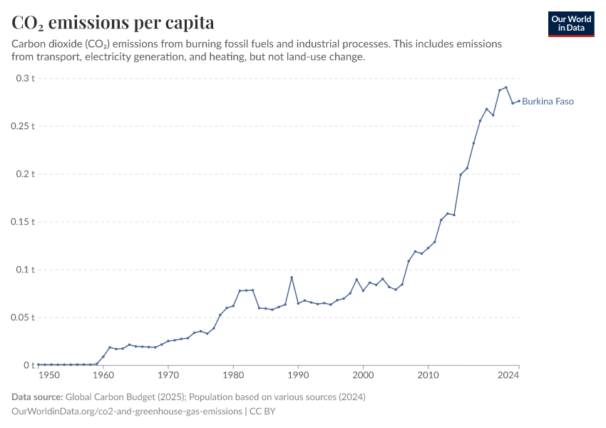 Hannah Ritchie (2025) - “CO₂ and Greenhouse Gas Emissions” Published online at OurWorldinData.org. Retrieved from: 'https://ourworldindata.org/profile/co2/burkina-faso' [Online Resource]BibTeX citation