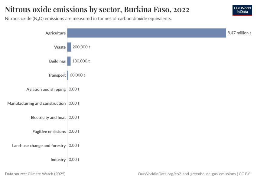 Nitrous oxide: how much does the average person in Burkina Faso emit? Where do emissions come from?