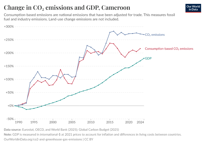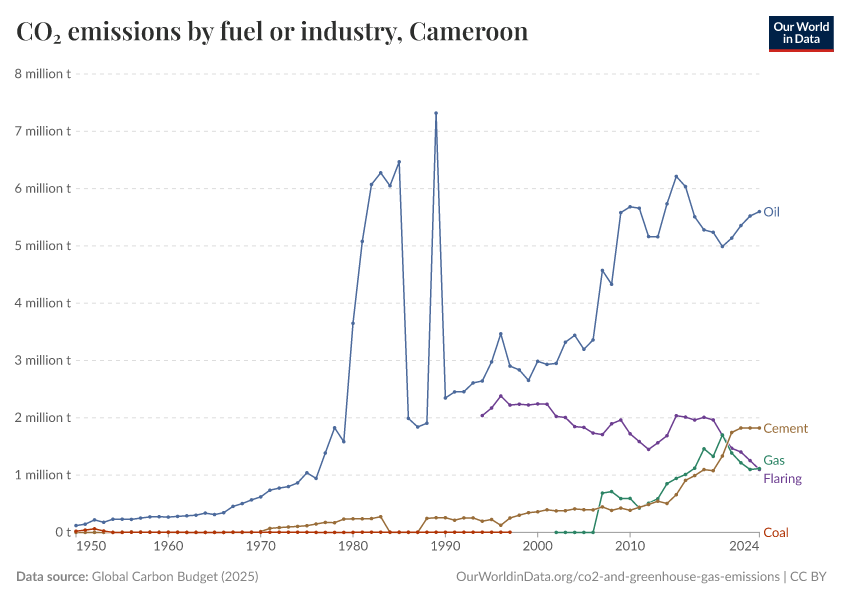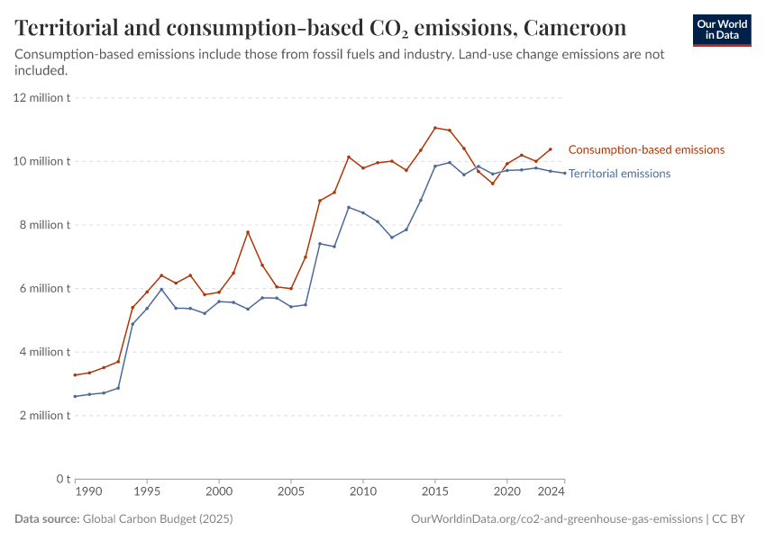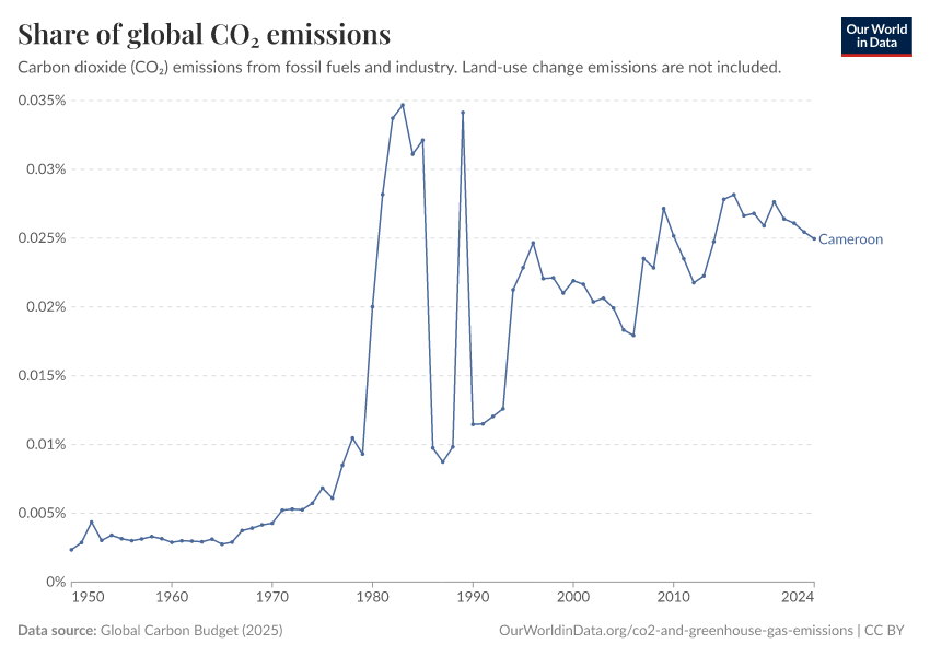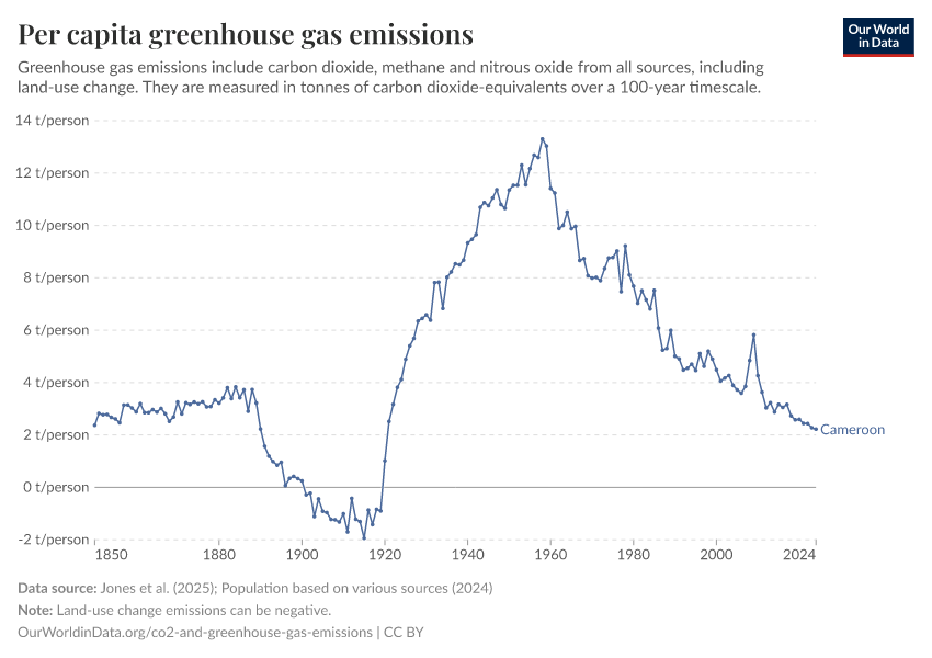 Hannah Ritchie (2025) - “CO₂ and Greenhouse Gas Emissions” Published online at OurWorldinData.org. Retrieved from: 'https://ourworldindata.org/profile/co2/cameroon' [Online Resource]BibTeX citation