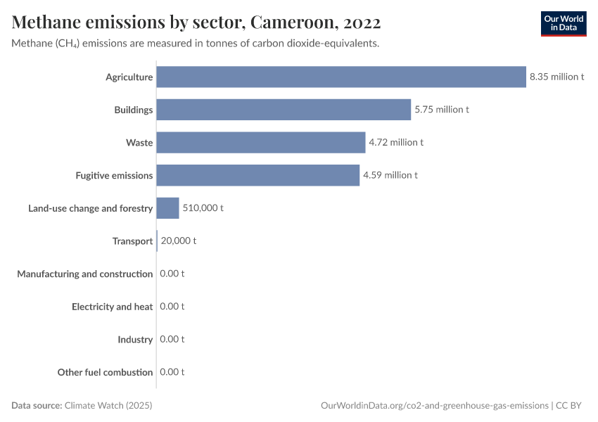 Methane: how much does the average person in Cameroon emit? Where do emissions come from?