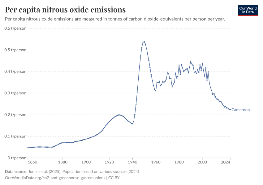 Nitrous oxide: how much does the average person in Cameroon emit? Where do emissions come from?