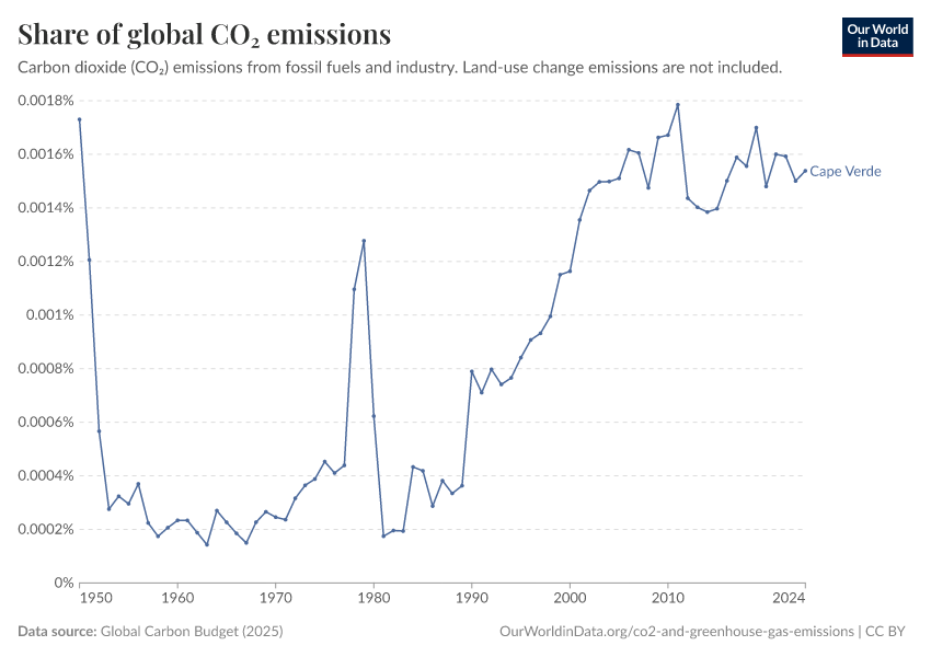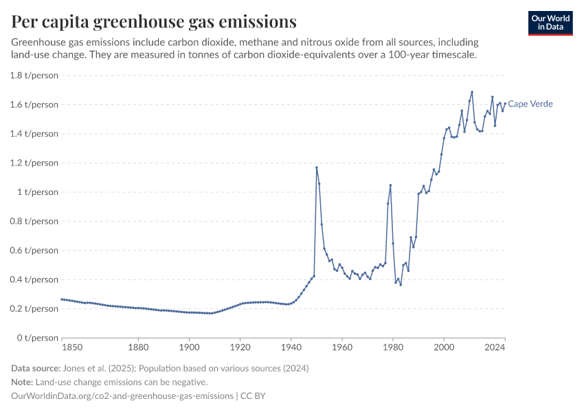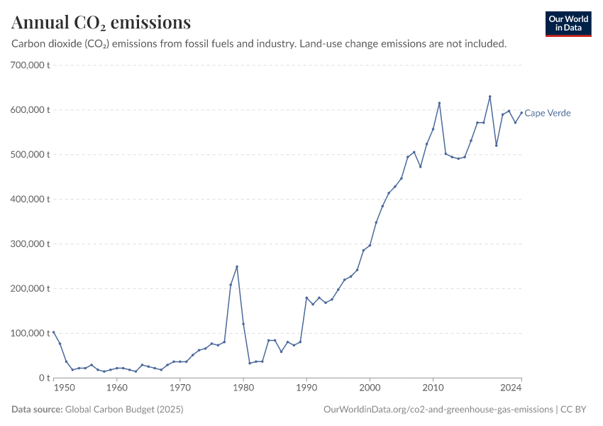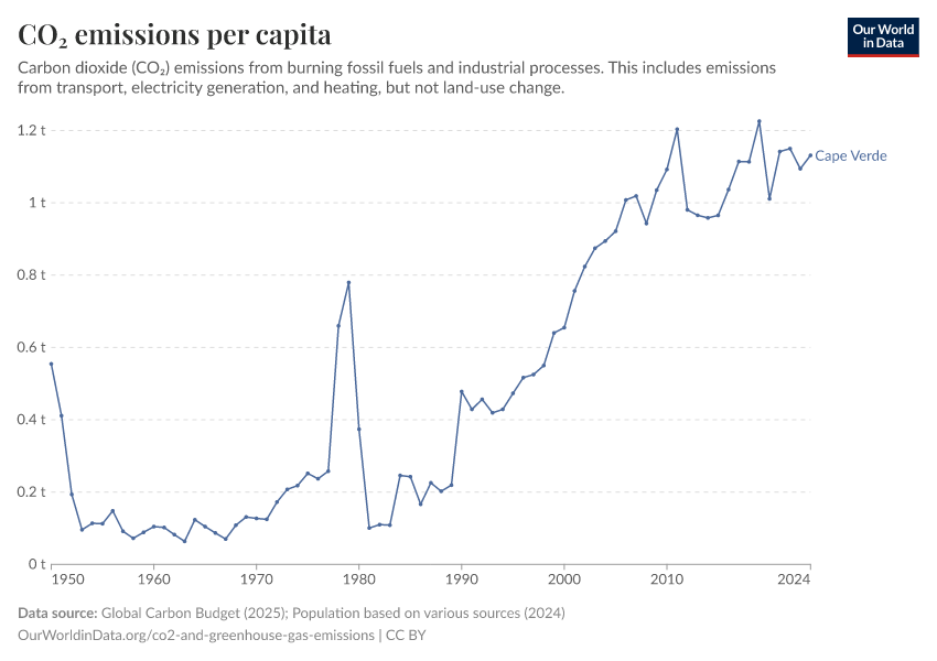 Hannah Ritchie (2025) - “CO₂ and Greenhouse Gas Emissions” Published online at OurWorldinData.org. Retrieved from: 'https://ourworldindata.org/profile/co2/cape-verde' [Online Resource]BibTeX citation