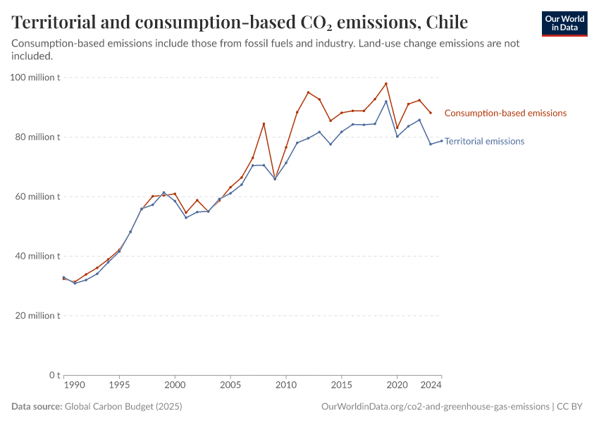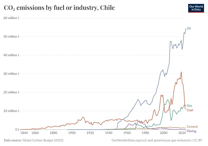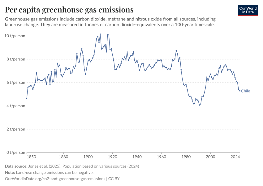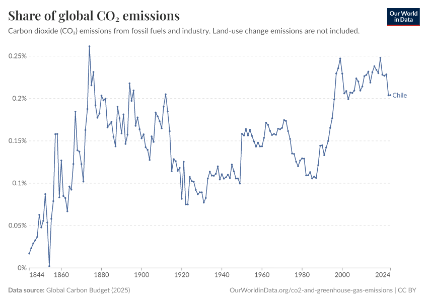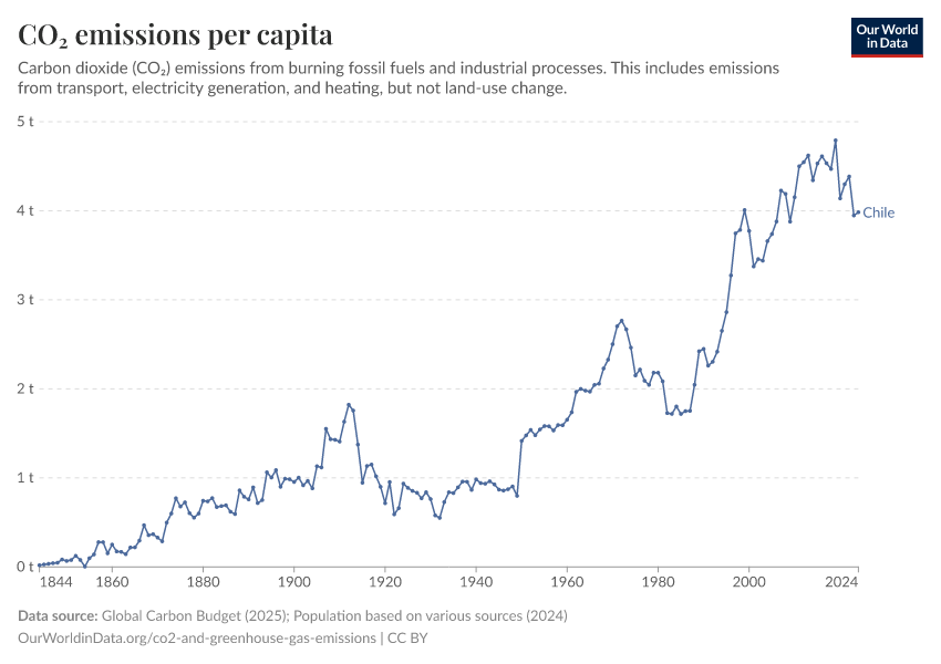 Hannah Ritchie (2025) - “CO₂ and Greenhouse Gas Emissions” Published online at OurWorldinData.org. Retrieved from: 'https://ourworldindata.org/profile/co2/chile' [Online Resource]BibTeX citation