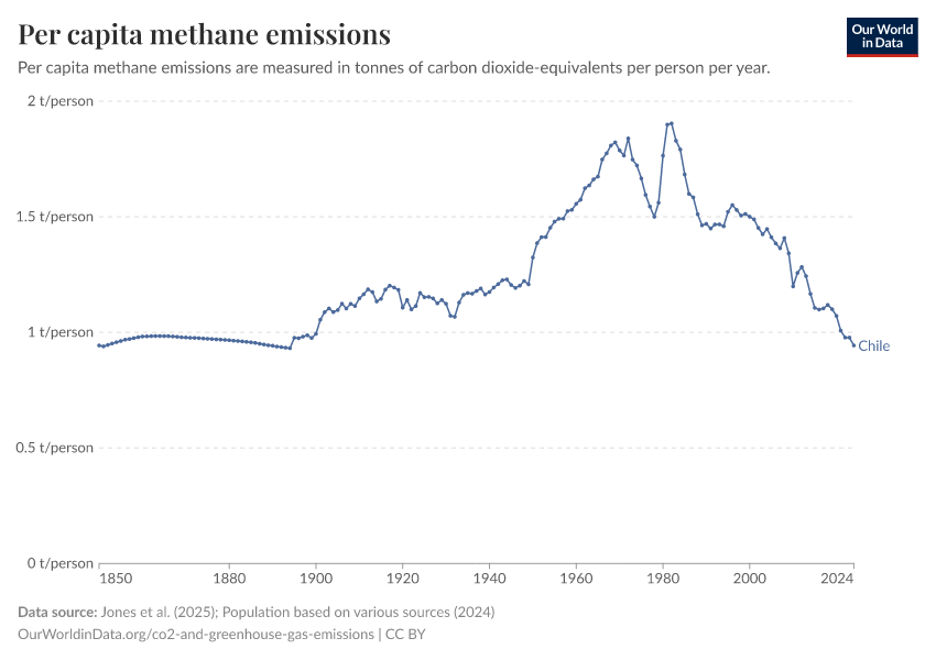 Methane: how much does the average person in Chile emit? Where do emissions come from?