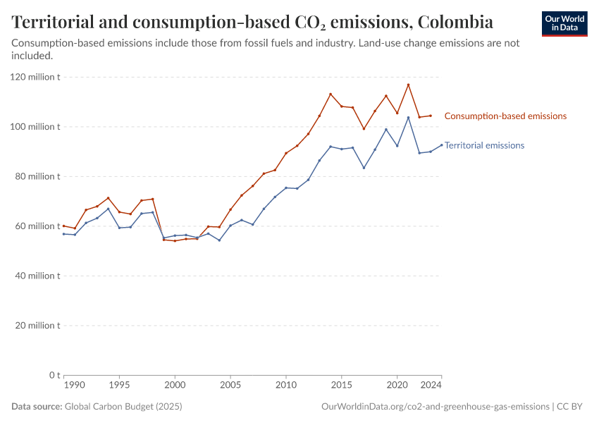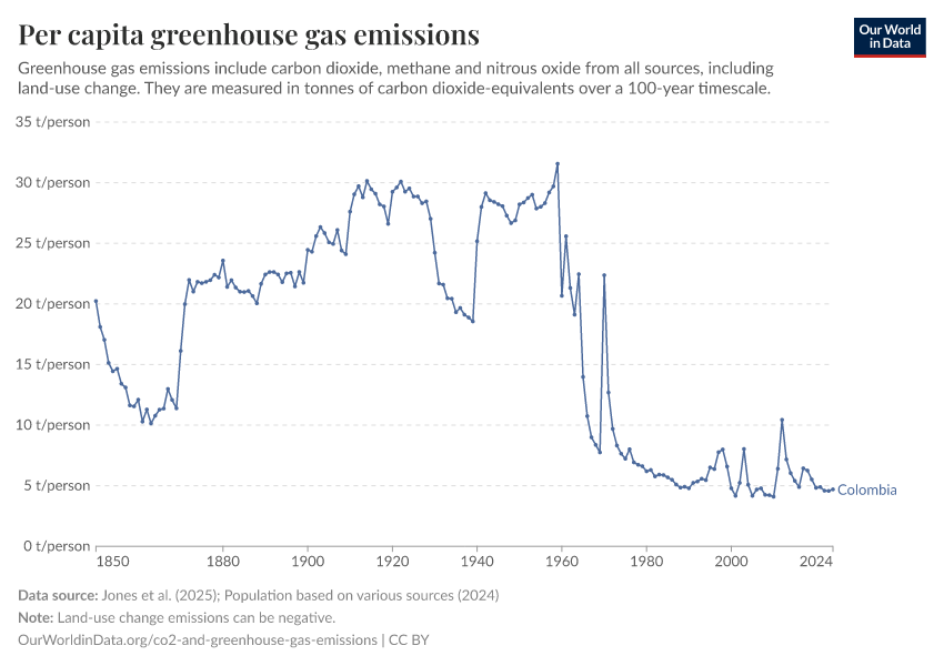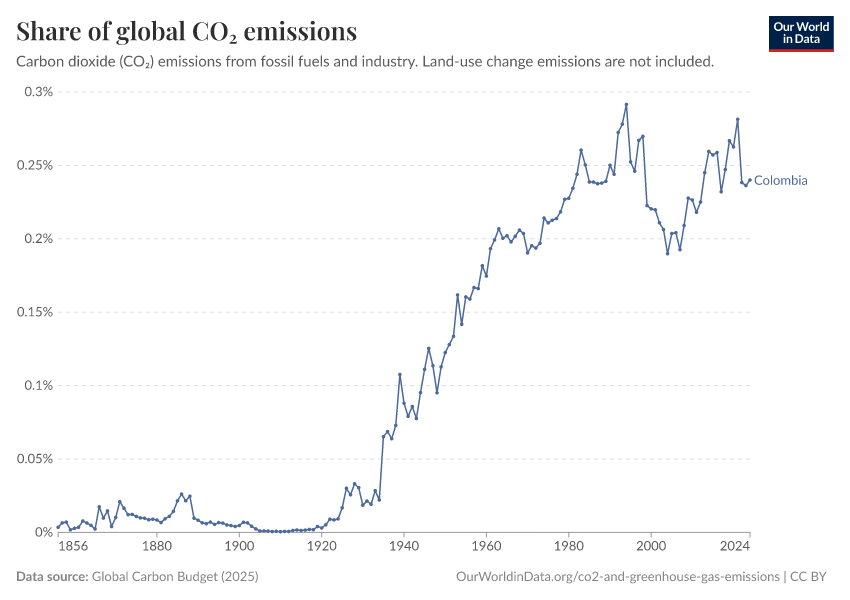 Hannah Ritchie (2025) - “CO₂ and Greenhouse Gas Emissions” Published online at OurWorldinData.org. Retrieved from: 'https://ourworldindata.org/profile/co2/colombia' [Online Resource]BibTeX citation