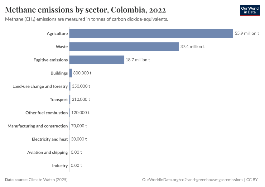 Methane: how much does the average person in Colombia emit? Where do emissions come from?