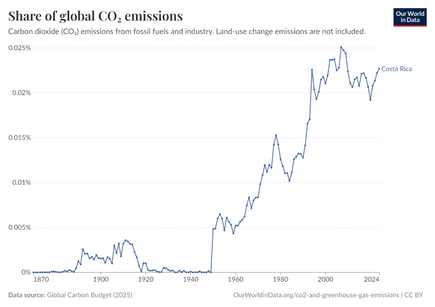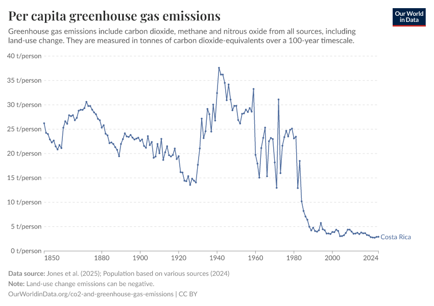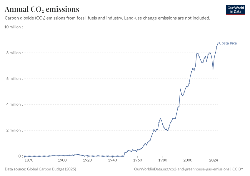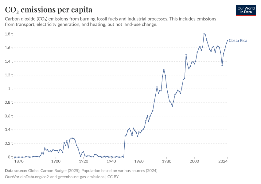 Hannah Ritchie (2025) - “CO₂ and Greenhouse Gas Emissions” Published online at OurWorldinData.org. Retrieved from: 'https://ourworldindata.org/profile/co2/costa-rica' [Online Resource]BibTeX citation