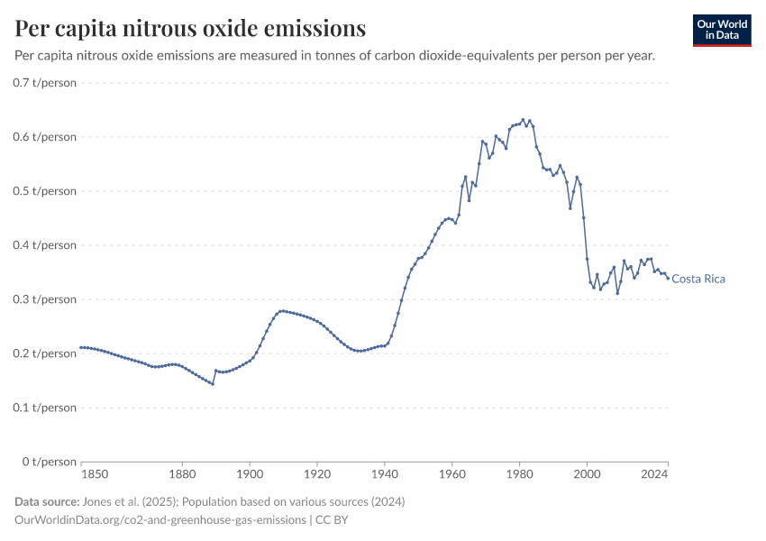 Nitrous oxide: how much does the average person in Costa Rica emit? Where do emissions come from?