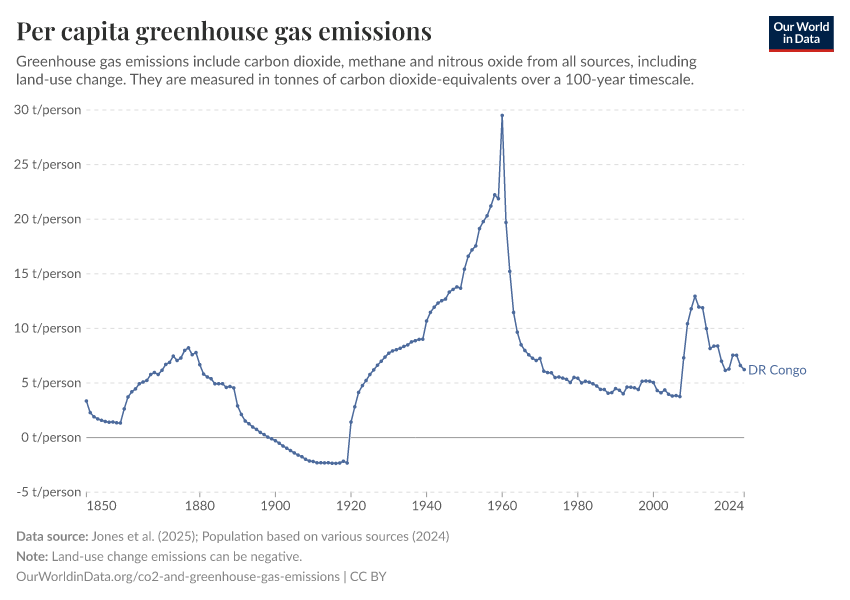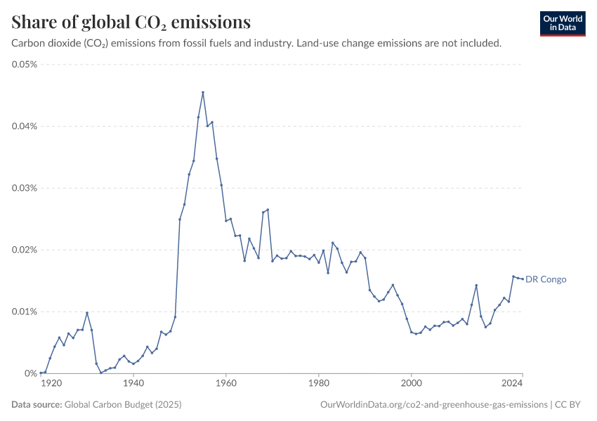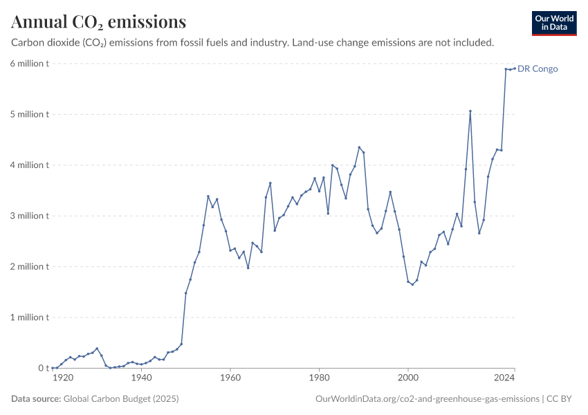 Hannah Ritchie (2025) - “CO₂ and Greenhouse Gas Emissions” Published online at OurWorldinData.org. Retrieved from: 'https://ourworldindata.org/profile/co2/democratic-republic-of-congo' [Online Resource]BibTeX citation