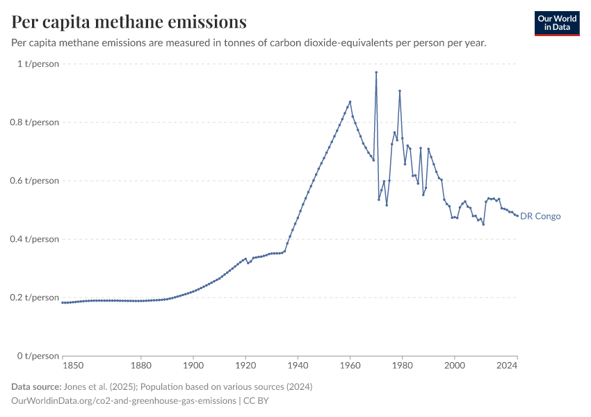 Methane: how much does the average person in the Democratic Republic of Congo emit? Where do emissions come from?