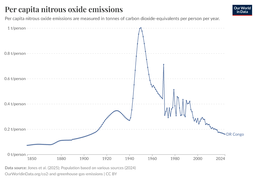 Nitrous oxide: how much does the average person in the Democratic Republic of Congo emit? Where do emissions come from?
